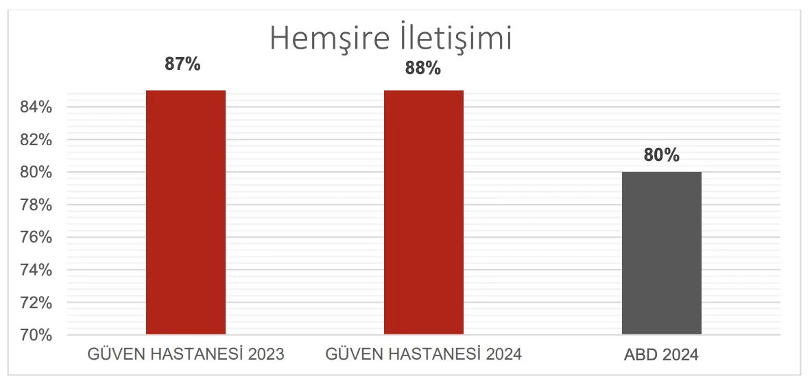 Sonuçlar CAHPS yöntemine göre hesaplanmaktadır. Bu yöntemde her sorunun sonucu, en yüksek skor, yani “her zaman” cevabı verilmiş anket sayısının, toplam cevap sayısına oranlanması ile hesaplanmaktadır. Elde edilen sonuçların aritmetik ortalaması alınarak “Hemşire İletişimi” oranı belirlenmektedir.