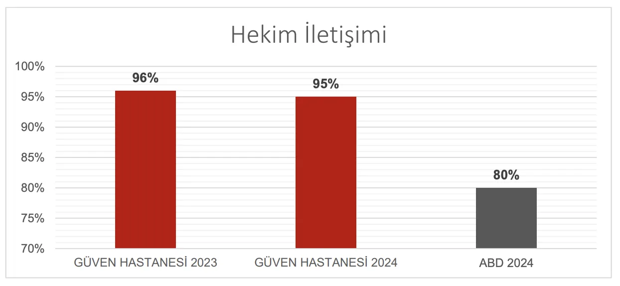 Hastaların taburculuğundan 24 saat sonra hastaya gönderilen “Yatan Hasta Memnuniyet Anketi” nde, “Hekimlerimiz” bölümünde yer alan aşağıdaki sorulara verilen cevaplar dikkate alınarak ölçülmektedir: