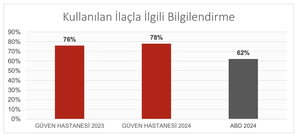 Sonuçlar CAHPS yöntemine göre hesaplanmaktadır. Bu yöntemde, en yüksek skor, yani “her zaman” cevabı verilmiş anket sayısı, bu soruya verilen toplam cevap sayısına oranlanmaktadır. Elde edilen sonuç “Kullanılan İlaç ile İlgili Bilgilendirme” oranıdır.