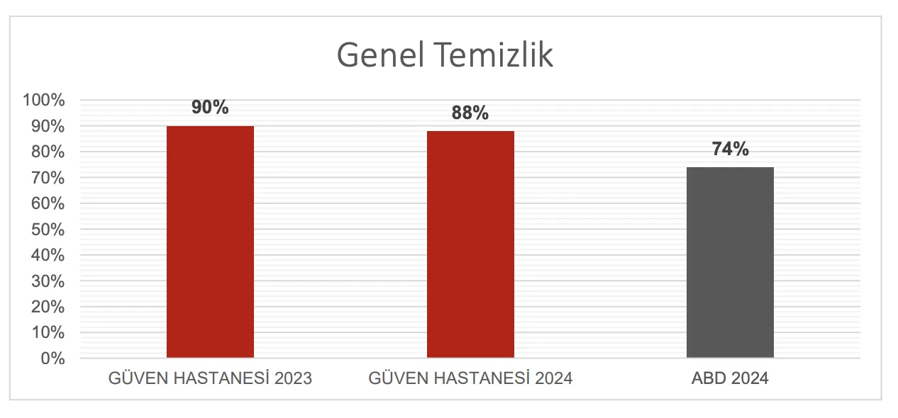 Sonuçlar CAHPS yöntemine göre hesaplanmaktadır. Bu yöntemde, en yüksek skor, yani “her zaman” cevabı verilmiş anket sayısı, bu soruya verilen toplam cevap sayısına oranlanmaktadır. Elde edilen sonuç “Genel Temizlik” oranıdır.