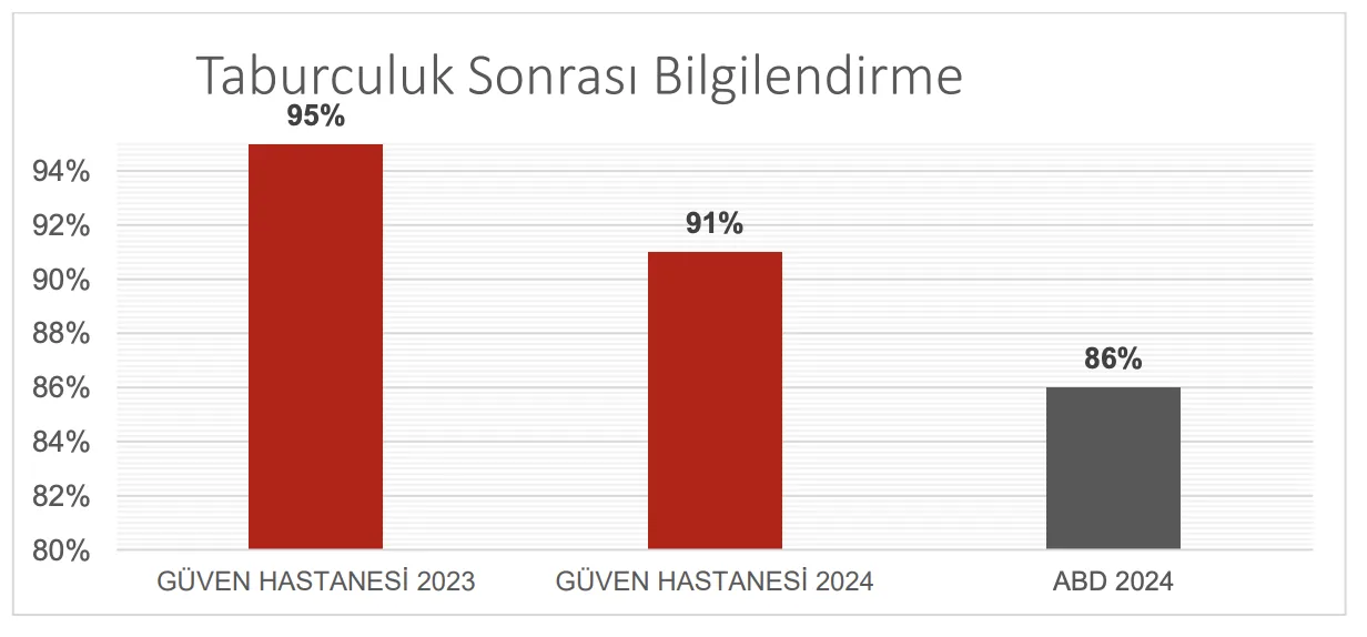 “Evet” cevabı verilmiş anket sayısı, bu soruya verilen toplam cevap sayısına oranlanmaktadır. Elde edilen sonuç “Taburculuk Sonrasında Süreçle İlgili Bilgilendirme” oranıdır.